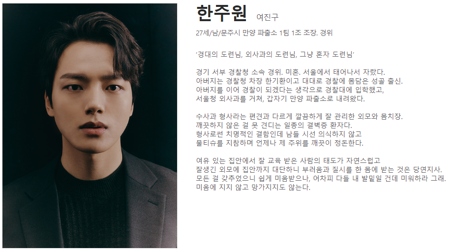 경찰대 수석입학 엘리트 형사 한주원(여진구)이